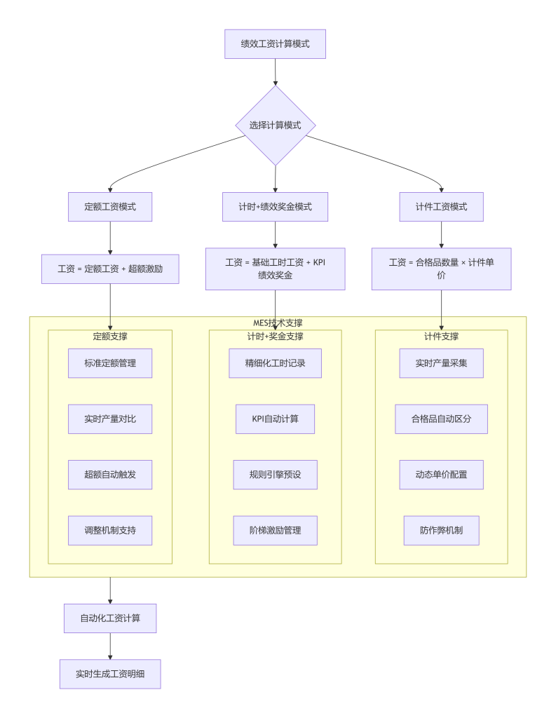 MES系统为不同绩效模式提供技术支撑,实现复杂规则的自动化计算: