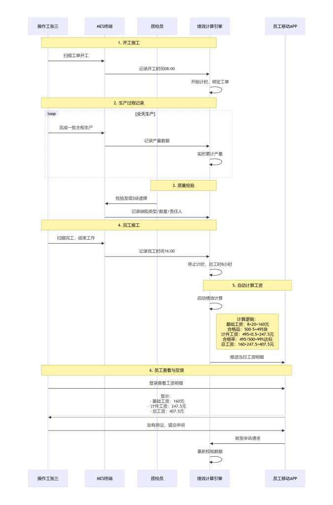 - 规则引擎:在MES中预设复杂公式,自动计算奖金明细。